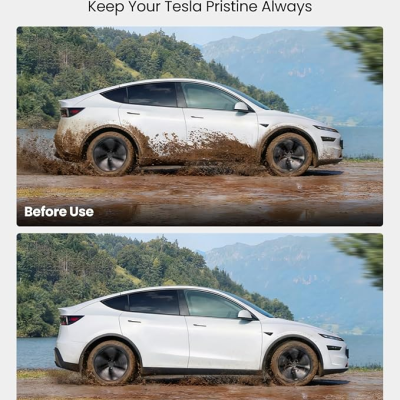 REEVAA next-gen mud flaps, exclusively designed for 2025-2026 Tesla Model Y (Juniper), blend minimalist aesthetics with 3X military-grade splash protection, effectively shielding your vehicle’s paint from mud, gravel and road debris while reducing cleaning frequency. Crafted from Tesla OEM-grade TPE and PP composite materials, they deliver exceptional durability, resisting high impact, corrosion and extreme temperatures from -40°F to 180°F after 1000+ stress cycles. Featuring 1:1 3D scanning precision for factory hole alignment, they install effortlessly in under 5 minutes with 10 OEM-spec snap-in clips and a no-drill, tool-free setup. Engineered for optimal performance, their aerodynamic profile minimizes drag (preserving 98% energy efficiency and range), maintains 6.7 inches of ground clearance to avoid scraping, and works reliably in all weather conditions. Backed by a lifelong warranty for material and workmanship defects and 24/7 customer support with 12-hour response, these mud flaps offer comprehensive, worry-free protection tailored for Tesla Model Y owners’ daily driving, road trips and outdoor adventures.