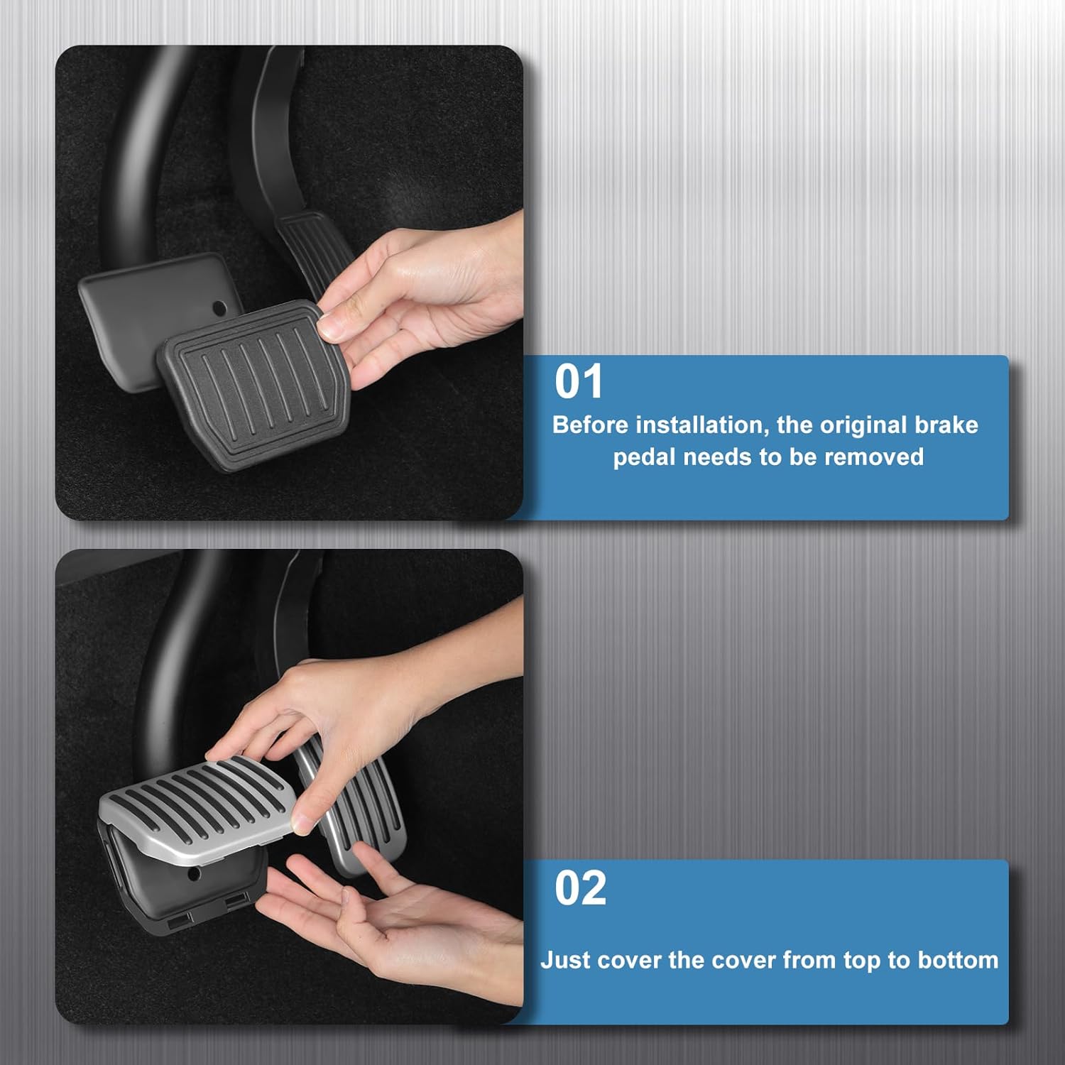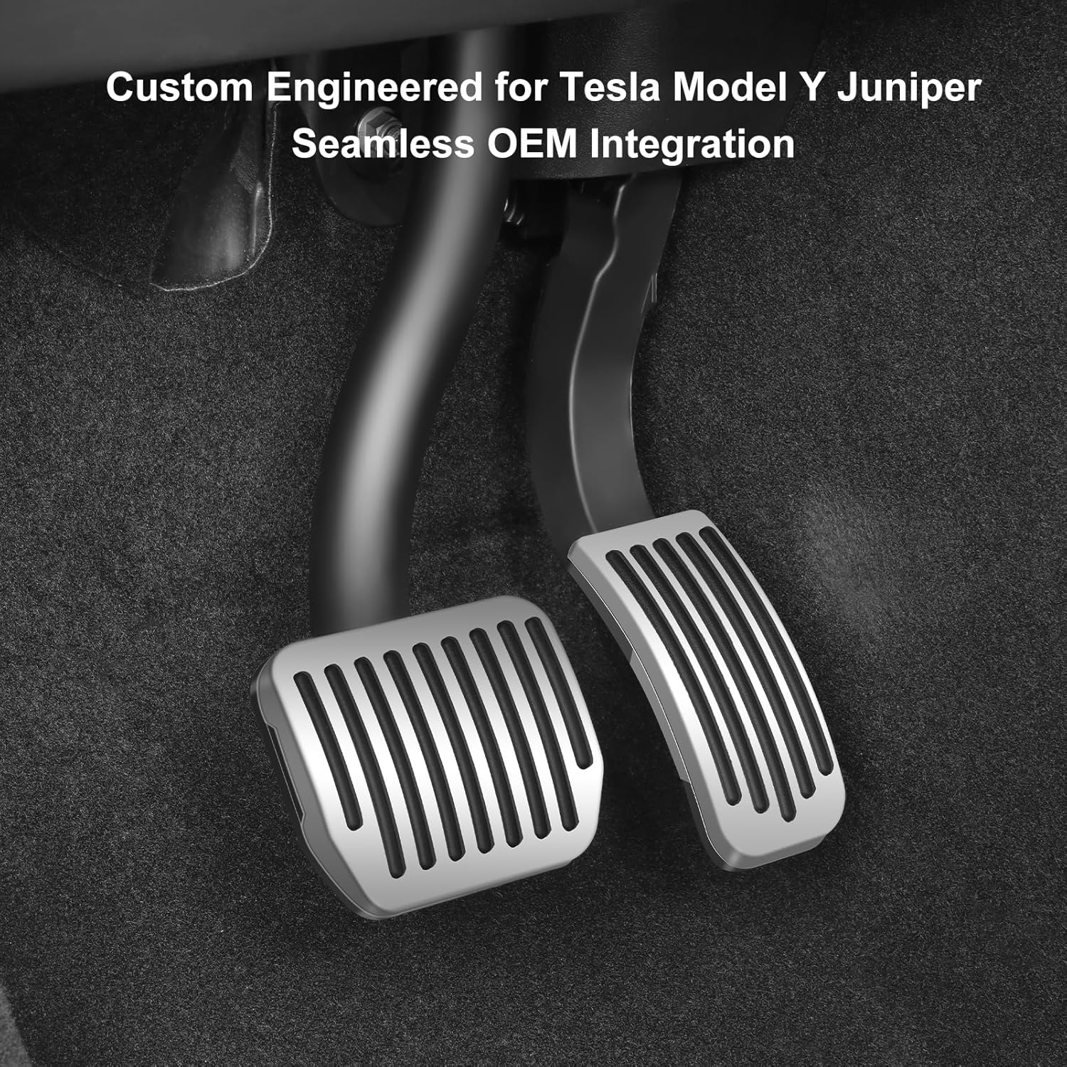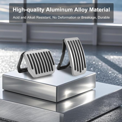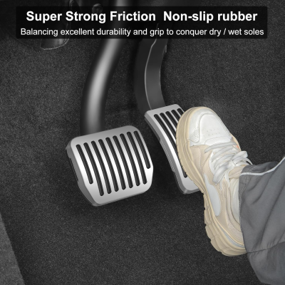 Premium aluminum alloy pedal covers designed exclusively for Tesla, featuring anti-slip rubber grooves for enhanced driving safety and control.